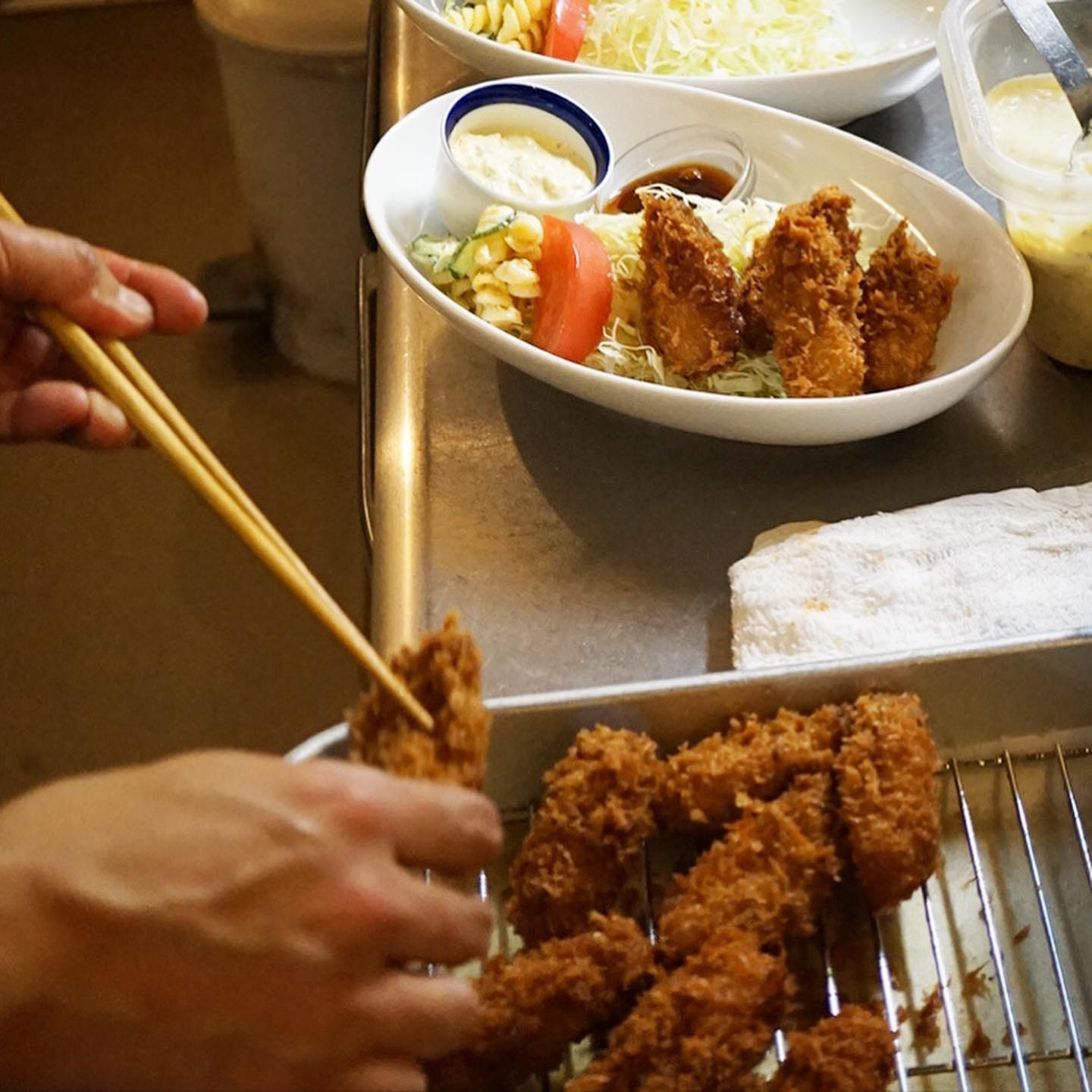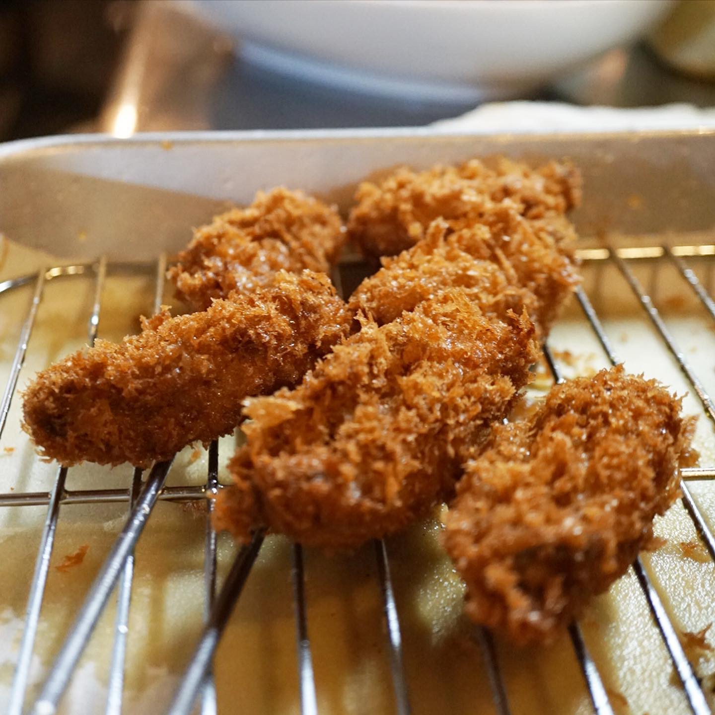 さてと今週スタートは冬の味覚の王様!ぷりぷり大粒のカキフライ!今年はコロモのパン粉もグレードアップでさらにおいしい! と、昨夜はご家族3名さまご来店でなんとみなさんこぞってのご注文もサンキュウ!(笑)今夜もあつあつぜひ!(お) 投稿日 2021年11月26日 更新日 2024年1月2日 著者 okayan カテゴリー single さてと今週スタートは冬の味覚の王様!ぷりぷり大粒のカキフライ!今年はコロモのパン粉もグレードアップでさらにおいしい! と、昨夜はご家族3名さまご来店でなんとみなさんこぞってのご注文もサンキュウ!(笑)今夜もあつあつぜひ!(お)