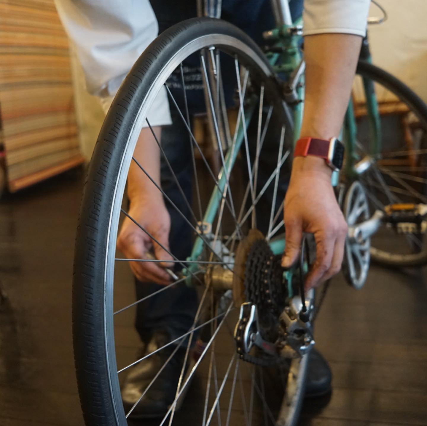さてさて今朝は先に自転車で出勤した店長でツレアイのミヤザキさんに「後ろタイヤ、ヤバいほど空気抜けてて疲れた」と連絡が!と、ワタクシすみやかに空気入れをリュックに入れて出勤、空気の入りをチェックしたら、こりゃ完全にパンクだわ!と、午後は3年ぶりにお店でワタクシ、タイヤチューブ交換!いや、タイヤ外しに苦戦はしたけど、なんとか上手いこといってヨカッタナ!がんばった!(笑)(お) 投稿日 2021年12月4日 更新日 2024年1月2日 著者 okayan カテゴリー single さてさて今朝は先に自転車で出勤した店長でツレアイのミヤザキさんに「後ろタイヤ、ヤバいほど空気抜けてて疲れた」と連絡が!と、ワタクシすみやかに空気入れをリュックに入れて出勤、空気の入りをチェックしたら、こりゃ完全にパンクだわ!と、午後は3年ぶりにお店でワタクシ、タイヤチューブ交換!いや、タイヤ外しに苦戦はしたけど、なんとか上手いこといってヨカッタナ!がんばった!(笑)(お)