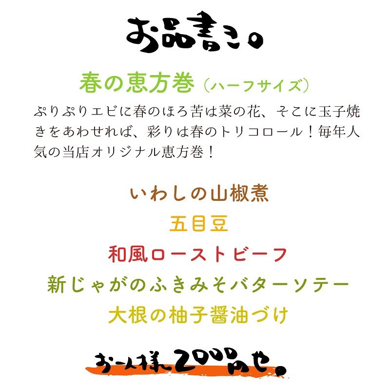 さてと今年は週中節分平日開催の「恵方巻きちょこもり」!はお持ち帰りのご予約スタートですよ!