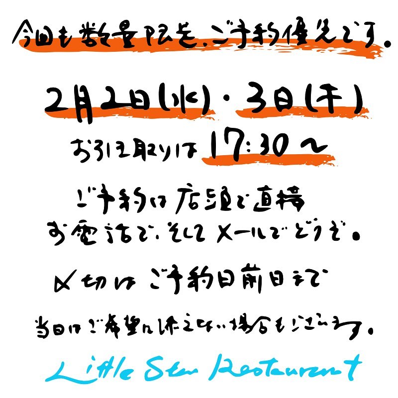 さてと今年は週中節分平日開催の「恵方巻きちょこもり」!はお持ち帰りのご予約スタートですよ! コロナ禍はマンボウ期間中ですがご自宅でならおいしく楽しい恵方巻きもいいでしょう! と、今回も数量限定はご予約優先、直接店頭でご予約のほかはお電話にメール(インスタならプロフィールの[問い合わせ]から電話もメールも出来ますよ!)でご予約いただけます(お引取り日時とお電話番号を明記して下さいね)。 ということで今年もまたちいさな海苔巻き祭り、よろしくお願いします〜!(お)