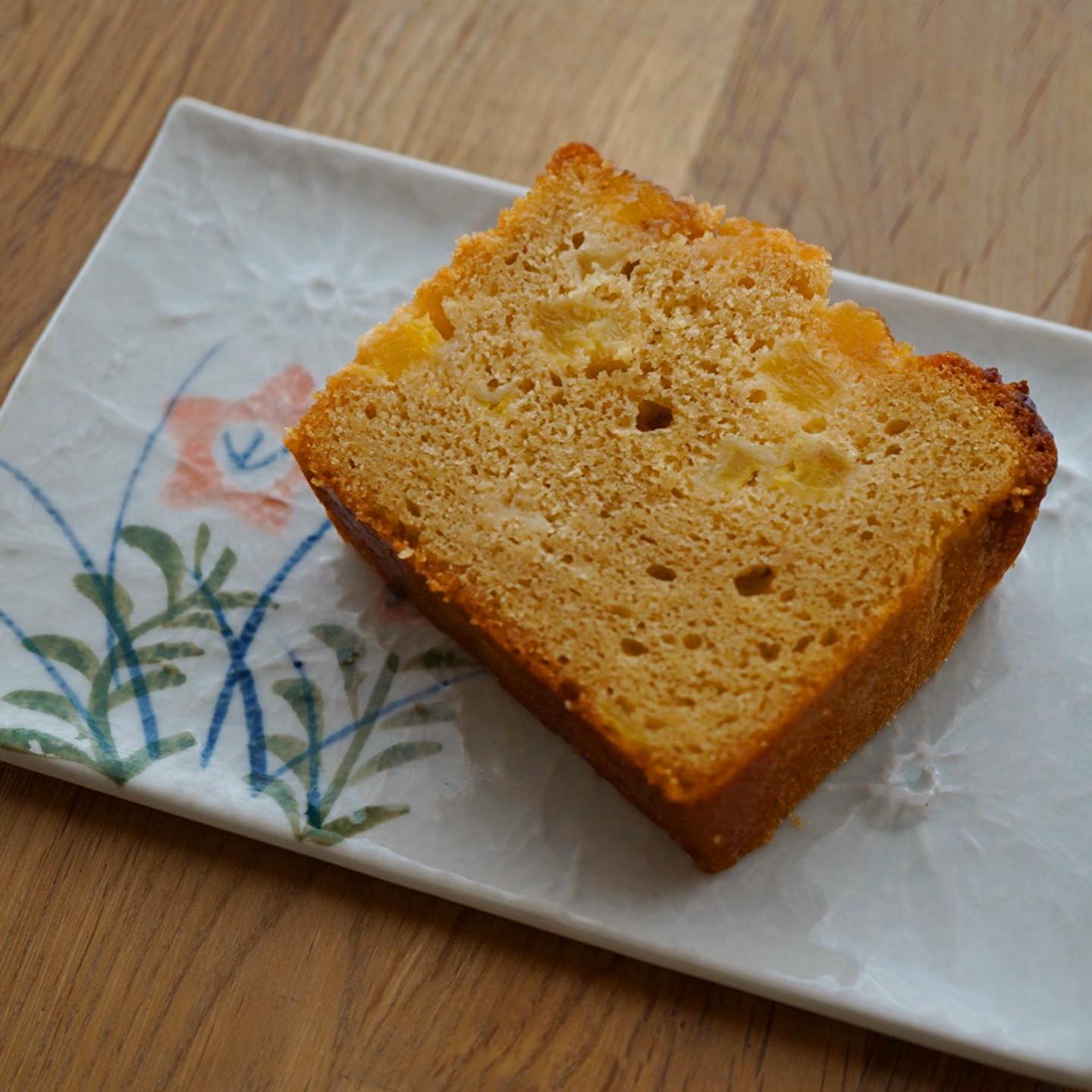 さてさて、お盆休み明け営業始まっておりますよ! 今週のデザートはあるだけ限定!「桃のコンポートとサワークリームの小さなケーキ」と、パウンドケーキは「黒糖とパイナップル」です。桃のコンポートは少しだけ作ったので数少なくてすいません、あと9個かな? パウンドケーキは夏らしく、パイナップルをシロップ煮にして、生地は黒糖ベースに。なんだか素朴な懐かしさを感じる味わいに仕上がりました。レアチーズケーキはもう少しだけ桃のレアチーズケーキでお出ししています!