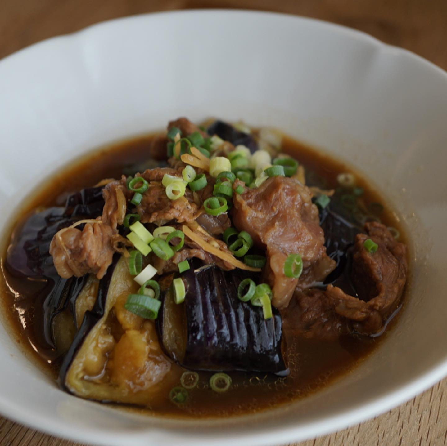 もう一つは田舎のおばあちゃんちに行ったら出てきそうな安心の味「牛肉と揚げ茄子の生姜煮」。コトコトじっくり柔らかくなるまで煮た牛すじ肉の甘辛煮に、サッと揚げた茄子を合わせて仕上げます。生姜の香りと安心の甘辛味でご飯もお酒も進みますよー。