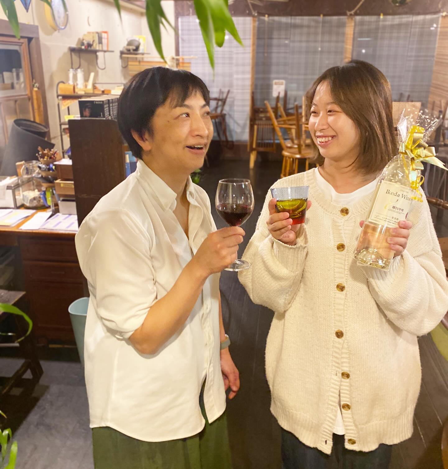 大学生スタッフ・でいしー、11日がお誕生日です!祝20歳ということで、店長ミヤザキとokayanのオーナー夫妻からはお酒を飲むのに素敵なグラス、なべさんからはオススメの白ワインとワインオープナーを、それぞれプレゼント。楽しい大人になってくださいね!おめでとう、でいしー!(麻) 投稿日 2023年12月10日 更新日 2024年1月2日 著者 okayan カテゴリー single 大学生スタッフ・でいしー、11日がお誕生日です!祝20歳ということで、店長ミヤザキとokayanのオーナー夫妻からはお酒を飲むのに素敵なグラス、なべさんからはオススメの白ワインとワインオープナーを、それぞれプレゼント。楽しい大人になってくださいね!おめでとう、でいしー!(麻)