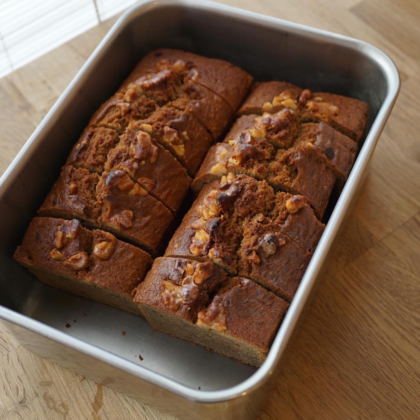 そしてパウンドケーキはコーヒーとクルミ。コーヒー味しっかり、クルミはザクザク、実はパウンドケーキ型を新しく買いまして、食感もアップデートされております。ぜひぜひおためしあれ。