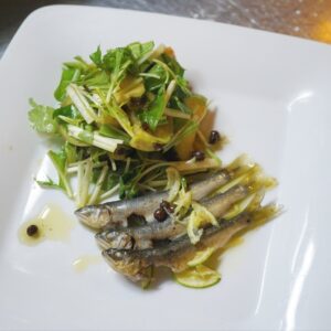 10年ぶりの登場は、ニラ肉じゃが! じゃがいもを素揚げして旨みを閉じ込めてから、そぼろと一緒に甘辛く煮付け…ここまでは普通の肉じゃが。仕上げにニラをたっぷり合わせてさっと煮ると、夏らしいスタミナのつきそうな肉じゃがに仕上がります。ほっとする肉じゃがの味に、香味野菜としてのニラのインパクト。あくまでお味は優しいですので、暑さに疲れたお腹にもするっと召し上がれるかと思います! 出ないと次はまた10年後かも 笑(麻)
