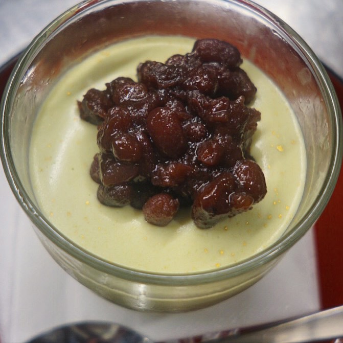 さてとハロウィン終わって当店季節のデザートは「抹茶のパンナコッタ」登場!生クリームと牛乳、それに上質な抹茶を贅沢に使って、甘すぎないミルキーな和風パンナコッタは、粒しっかり目の自家製あんこをのっけていただきます!