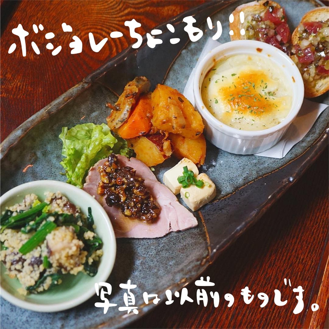 さらにさらに…一部のファンの方にはこちらがメイン、リトスタ的「ボジョレーちょこもり」をご用意します! フレッシュでフルーティな赤ワイン、ボジョレー・ヌーボーにぴったりのおつまみの盛りあわせです。