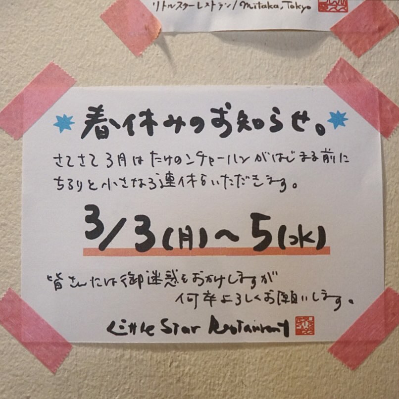さてさて当店次の定休日に合わせて3月アタマ、たけのこチャーハンがはじまる前に、ちらりと小さな春休みは3連休をいただきます…みなさんにはご迷惑をおかけしますが、何卒よろしくお願いします〜★(お) 投稿日 2025年2月26日 著者 okayan カテゴリー single さてさて当店次の定休日に合わせて3月アタマ、たけのこチャーハンがはじまる前に、ちらりと小さな春休みは3連休をいただきます…みなさんにはご迷惑をおかけしますが、何卒よろしくお願いします〜★(お)