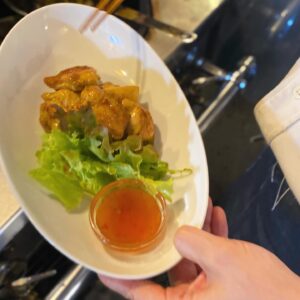 完熟トマトは角切り、みじん切りの玉ねぎと爽やかな辛みの青唐辛子と合わせて、軽く酢と胡麻油、塩でマリネした雲南省式トマトサラダ!スプーンですくってひとくち頬張れば、ピリリと辛くて酸っぱい、程よい刺激が夏の暑さにピッタリです。ぜひぜひ!(麻)