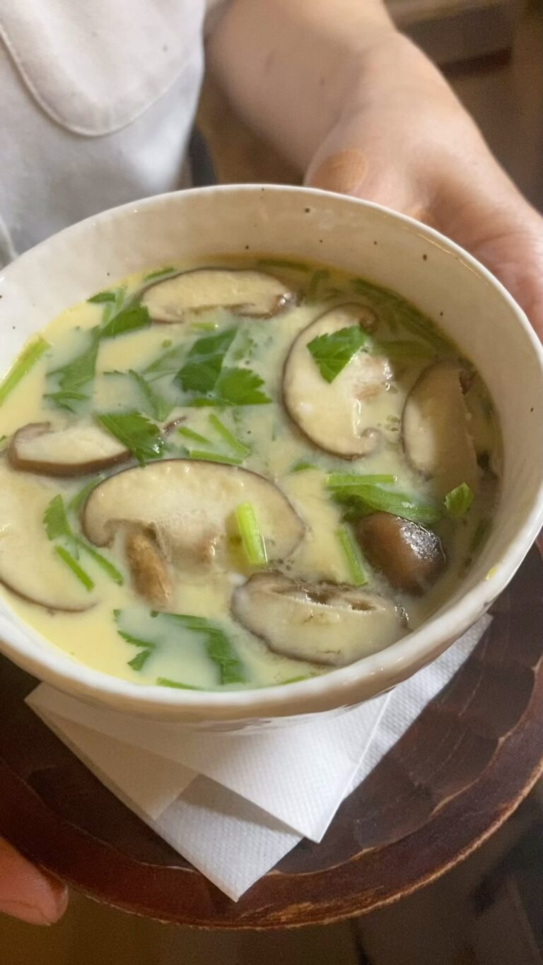 急に寒くなりましたね…グラタンに代わりまして、熱々担当は「自家製茶碗蒸し」ですよ! むかごとエビ、三つ葉としいたけ…具沢山で大ぶりの茶碗に作ってます! ほーら、フルフルですよー、夜だけですよー!(麻)