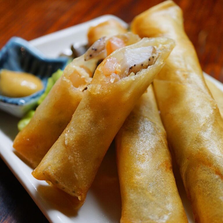 さらにビールのお供は揚げたてあつあつ新作揚げ春巻き!「エビとれんこんの揚げ春巻き」!いや、ぷりぷりエビの旨味と風味にさっと塩茹でしたれんこんのシャキシャキ感!ちょいと辛子醤油をつけてどうぞ!(お)