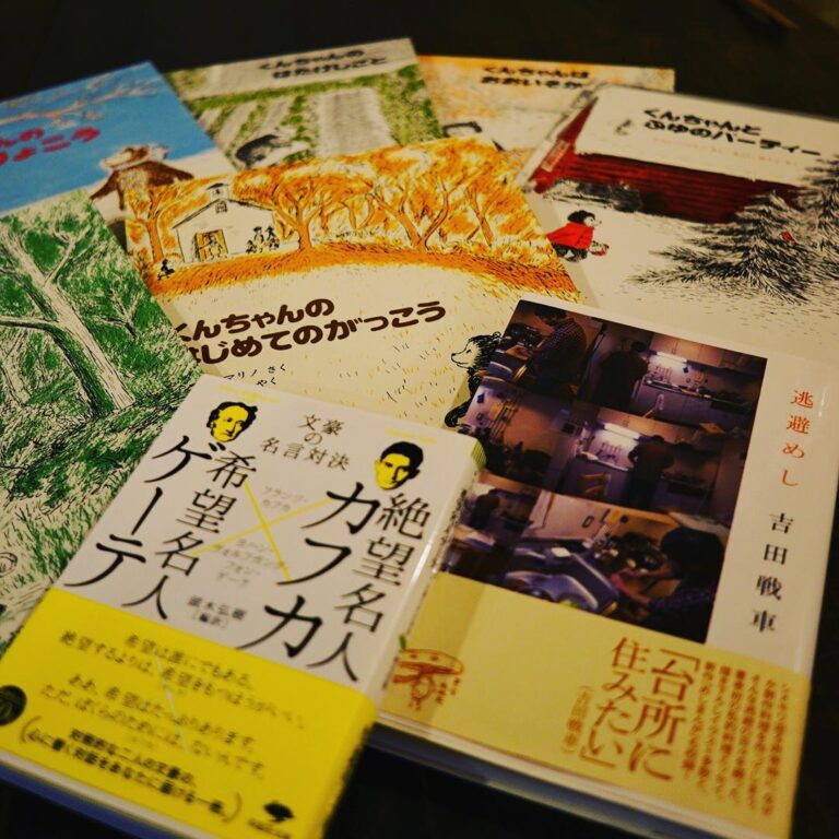 昨日納品された当店の小さな新聞は隔月新聞ごはん、午後はワタクシ新聞配達のついでに水中書店では取り置いてもらってたくんちゃんシリーズを6冊と吉田戦車の「逃避めし」よもぎブックスではゲーテとカフカの名言対決を購入!いやいい買い物した!(笑)(お)