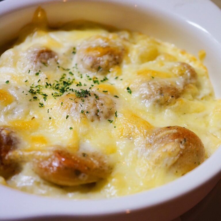 ってなわけでこちらが「白ソーセージとじゃがいもゴルゴン」!ほっくりふかしたじゃがいもにゴルゴンゾーラチーズの風味!バターといっしょにあわせたら、ちょっとすてきな白ソーセージはチューリンガーでボリューム満点!あつあつチーズ焼き!(お)