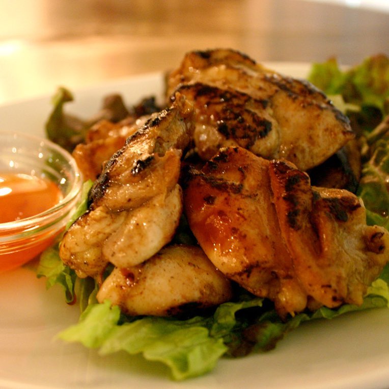 さてさて今週の当店夜メニューはエスニック寄りでまいります!と、お肉メニューはやっぱりコレ!「タイ風ハニーチキン」!にんにくとはちみつにスパイスなどなどで作った自家製たれに漬け込んで、じゅうっと焼いたジューシーチキン!ぜひ!(お)