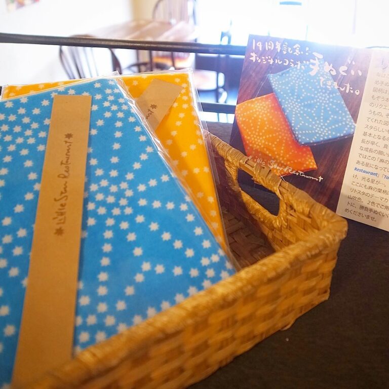 さてと今年の周年記念オリジナルグッズはもう長らく当店とお客さんは吉祥寺に工房を構える「ともぞう本舗」さんとのコラボ手ぬぐい!とうてん星のモチーフを麻の葉の和柄に展開して下さいました!(お)