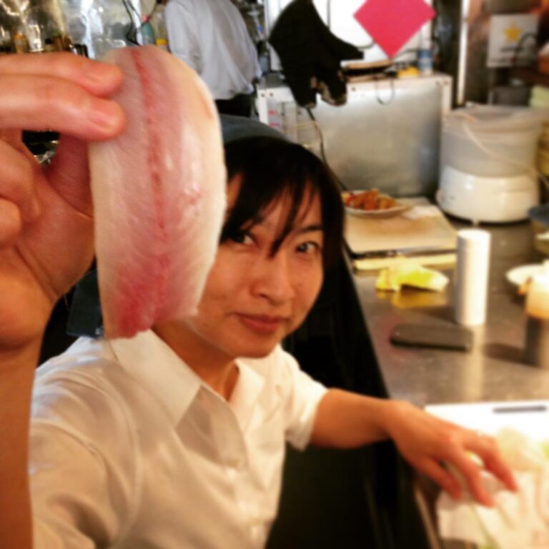 アジをさばいて小骨をピンセットで取り除く店長。このひと手間あっての美味しさなんですね。美味しくなるぞぉ!な一コマでした(うめ)