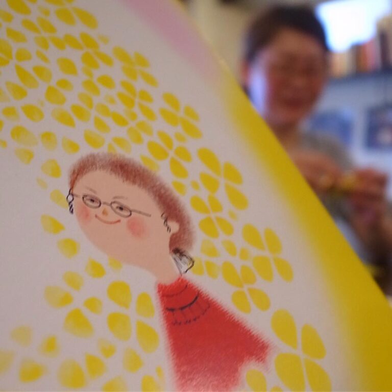 スタッフうめさんのGWは鴨川土産のお菓子…箱のイラストオンナノコ、あれ?この子なんだかうめさんに似てない?と店長ミヤザキ眼鏡とあれこれチョチョイと書き加えたら、ハイ、うめさん!(笑)(お)
