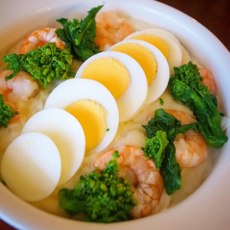 さあさあ今夜のおススメはやっぱりあつあつ!「エビとブロッコリー、ゆで玉子のグラタン」!東京も今週は冷えますからね!元キッチンスタッフはまちゃんち譲りのゆで玉子のグラタンです!(お)
