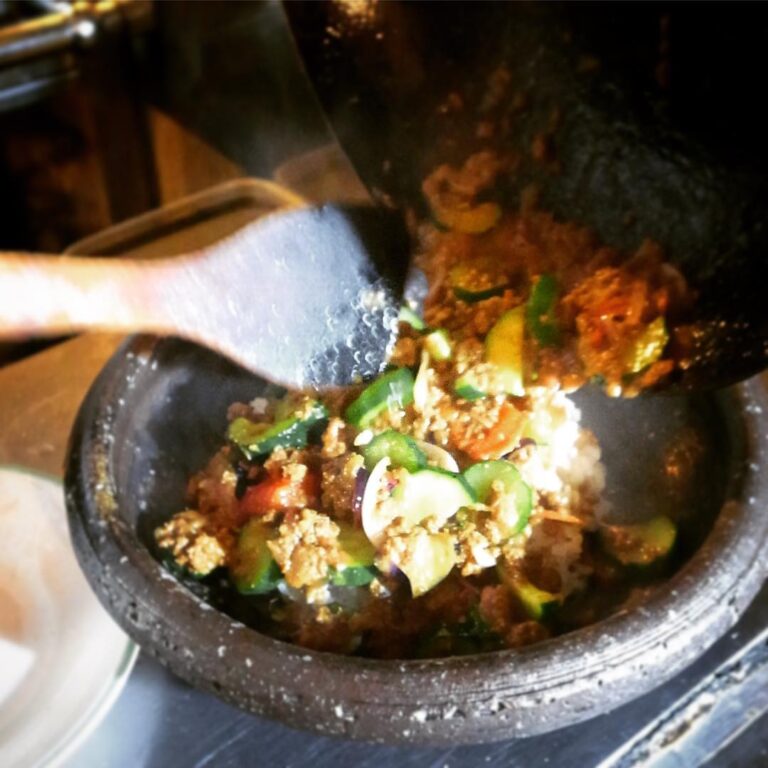 昨夜登場の新作カレーは「塩もみ茄子ときゅうりのフレッシュキーマカレー」!今夜も店長ミヤザキじゃじゃっと作っちゃってますよ!(お)