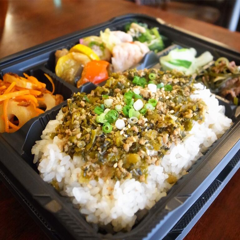 さてと今日はホール係南ちゃん、店長ミヤザキにお弁当をリクエスト!ちょこちょこ惣菜盛り合わせにとどんと高菜そぼろのどんぶり的弁当!あー、おいしそうです!すぐさまたべたいです!(笑…今おなか空いてます!)(お)