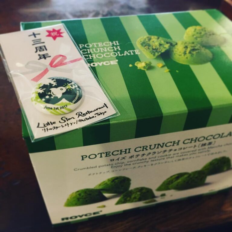 おなじみのお客さまに、北海道土産をいただきました!偶然だけど13周年抹茶色でしたよ!とお客さま。ホントだ、うれしいな!ありがたくいただきます〜〜(麻)