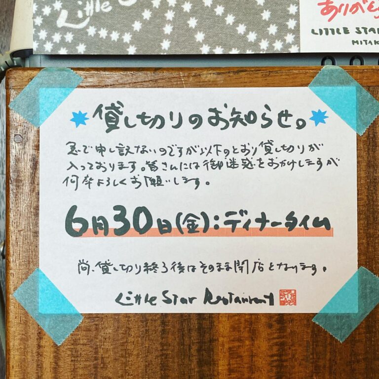 さてさて6月も最終週!と、ちょっと急で申し訳ないのですが明後日30日は金曜の夜、当店貸し切りが入りまして、夜の通常営業はお休みです…みなさんにはご迷惑をおかけしますが何卒よろしくお願いします!(お)