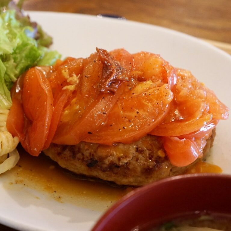 さてと今週からランチ定番も夏限定の特別メニュースタート!ハンバーグは大人気ですっかり定着の「たまねぎしょうゆ」をお休みして「フレッシュトマトのハンバーグ」!旬のトマトはまるまるひとつ分、ハンバーグといっしょに焼いてソースがわりにのっけ盛り!さっぱりトマトでやっぱ夏のおいしさですよー!とぜひ一度お試しくださいませませー!(お)