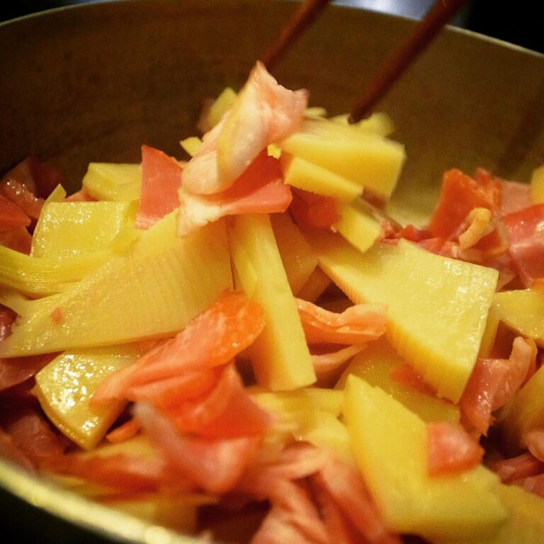 さてと当店今夜はこの春初たけのこ!…って毎年恒例の大人気メニューではないんですが、えぇ、まずはベーコンといっしょにざくざく炒めてしまいます!(すでにこの時点でおいしそう!…笑)(お)