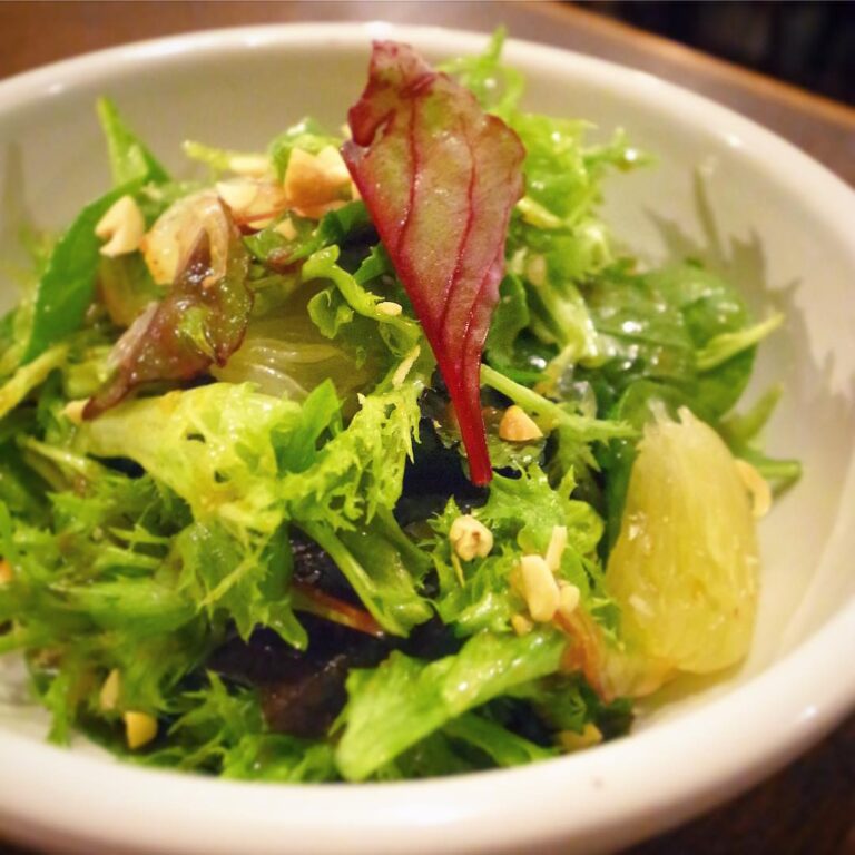 そして今夜の新メニューは柑橘のサラダ!「文旦と春野菜のサラダ」!みずみずしい文旦のフレッシュな酸味と甘み、ざくざく春の葉物野菜と合わせたら、自家製にんにくレモンドレッシングにクラッシュドピーナツを散らして!(お)