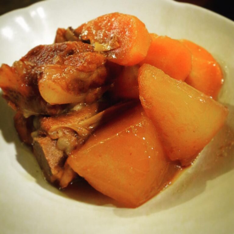 さてと冷たい雨、金曜夜…今夜の新メニューは「スペアリブと根菜の韓国風煮込み」!豚スペアリブの旨味、しっとり根菜のおいしさ…フルーティな甘みの自家製韓国風醤油だれで煮込んだあったか旨口甘辛煮!ぜひ〜!(お)