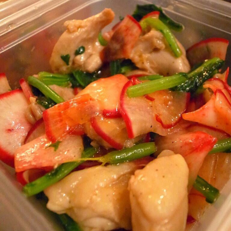 あー、いいお天気!仕事なんかしてる場合じゃないね!(そんなわけない!)と、昨夜から登場のちいさな新メニューは「赤かぶと鶏肉のレモンマリネ」!いや、赤かぶの色味の華やかさ!…って実はなにげに栄養満点野菜のかぶ!葉っぱまで余すとこなくさっぱり旨口レモンマリネ!(お)