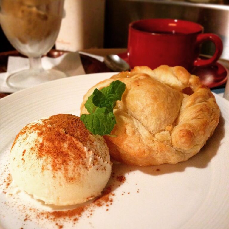 今季初アップルパイ、出ました〜〜アツアツのパイ生地に溶けゆくアイスを絡めながらどうぞ!(ぬ)