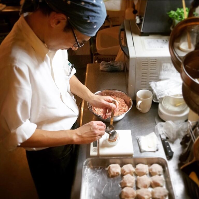 しっとりひんやり秋ですなと、えぇ、暑い間はお休みしておりました「自家製ホタテ入りシュウマイ」今夜復活!キッチンスタッフのくぼさんがせっせと包んでくれてます!(お)