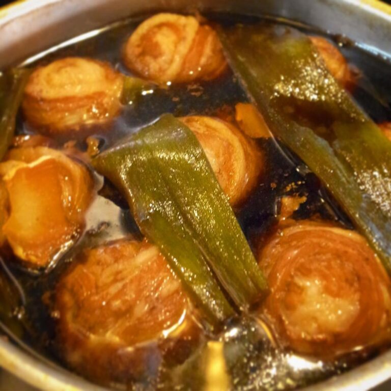 ふつふつ煮立ったら臭み消しの生姜と長ねぎの青いところを入れて落し蓋、20分ほど煮込んだら出来上がり!ワタクシ実家はお弁当の一品、いや、すぐさまたべたーい!(笑)(お)
