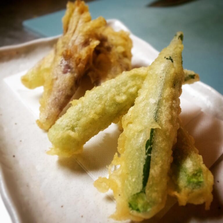 さてと今週の天ぷらメニューは「茗荷とオクラの天ぷら」!さっくり揚げたてあつあつ天ぷら!茗荷の独特なさわやかさと風味、オクラのねばねばさ…シンプルに山椒塩でいただきます!さくさくたへよう!(お)