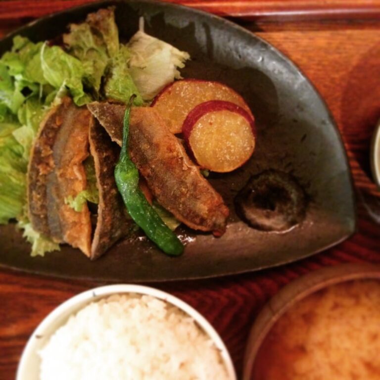 今日のまかないは、さんまの香り揚げです。しょうがとにんにくとお醤油で味付けたさんまを揚げて…と、これはご飯がすすむ! ということで、ごはんは多めに盛って。一緒に揚げられたサツマイモも美味しくて、まいりました。(な)