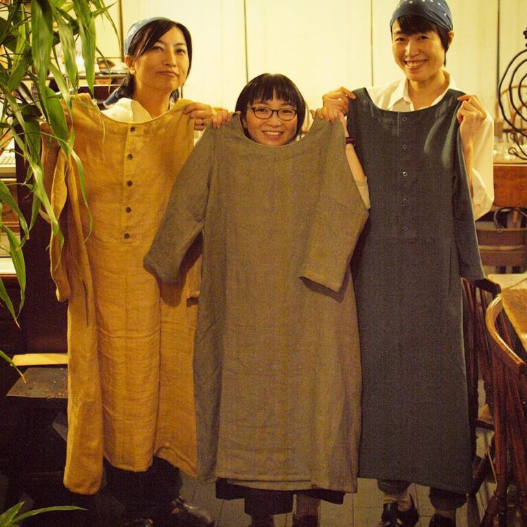 日曜日の夕方は久しぶりに元スタッフで最近は当店おかかえ縫い子さんのはまちゃんがご来店がてら納品は店長ミヤザキにぬまっち、ウメさんが生地を預けておいたワンピースを納品してくれました!もちろん100%はま子クオリティ!すてきです!(笑)(お)
