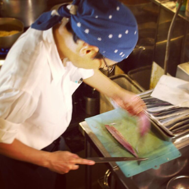 雨は降れども週末は土曜日ですよと、午後の仕込みはくぼさんがまたせっせと旬のさんまを捌いてくれております!今夜も出ますよ!人気の「さんまのたづな揚げ」!(お)
