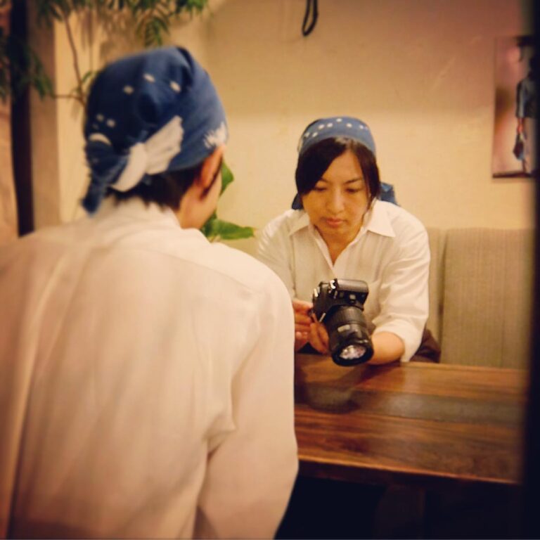 只今気鋭編集中!当店の小さな新聞は「毎月新聞ごはん」…表紙用の写真撮影、今回は主要スタッフのソロ写真をどんどん撮って…最後に店長ミヤザキの撮影はぬまっち…チェックからオッケー出ましたよ!(笑)(お)