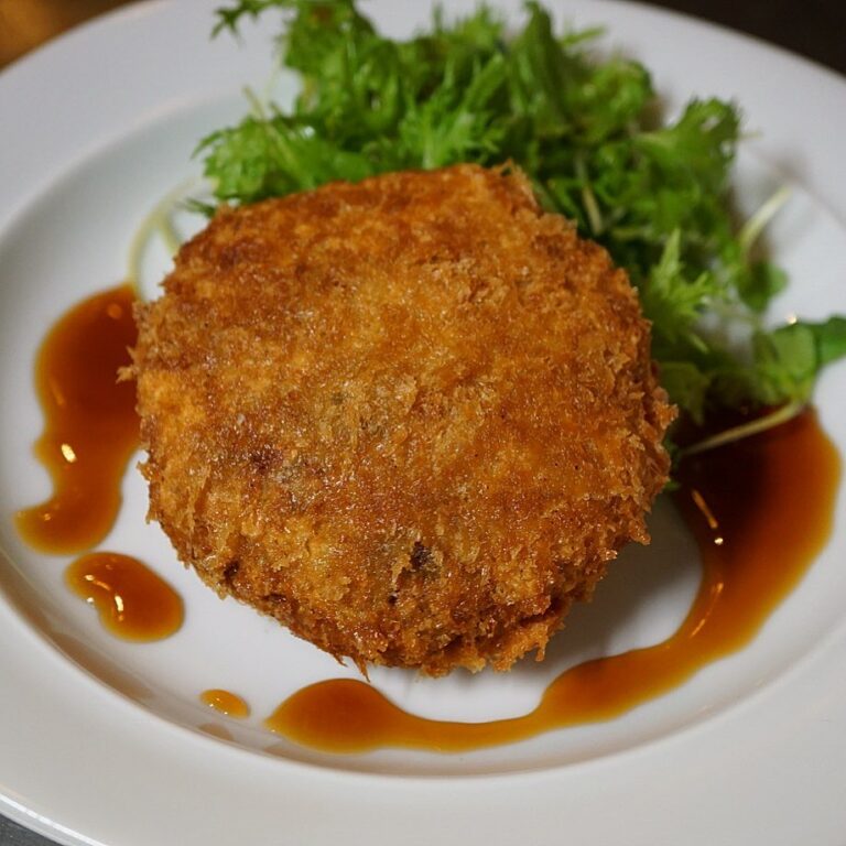 あれ?なに??コロッケ??なんて、この写真じゃわかんないですよね?と(苦笑)いや、実は久しぶりの登場ですよ「まぐろと長ねぎのメンチカツ」! 旨味満点まぐろに長ねぎをあわせたら、つまりこれは「ネギトロ」じゃん!と、そう!そのネギトロにパン粉をつけてからり揚げたてあつあつメンチカツ!とろみしょう油シンプルにどうぞー!(お)
