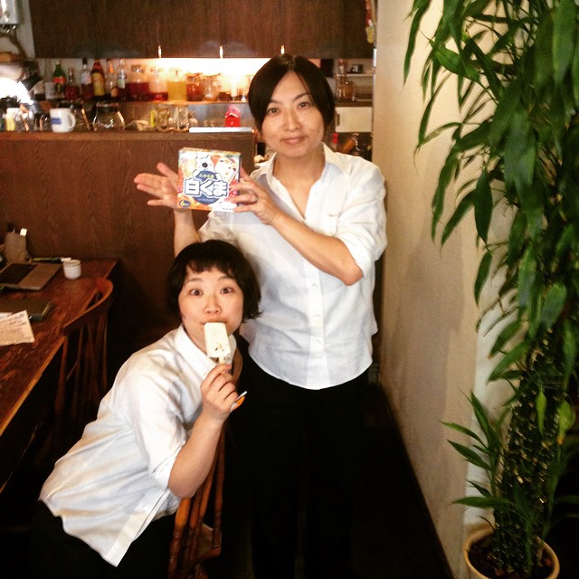 先日みちゃ&ささがご飯に来てくれました〜みちゃからは11周年のお祝いデザートいただきましたよ。ごちそうさまでした! さてさて、2人に新メニューのジンジャーミルクアイスを試食してもらって、『美味しい』いただきましたよ〜!ピリッと生姜を効かせて、アイスクリームはシャリ感も少し残しながら。まだの方はぜひ一度ご賞味くださいませ〜!!(ぬ)
