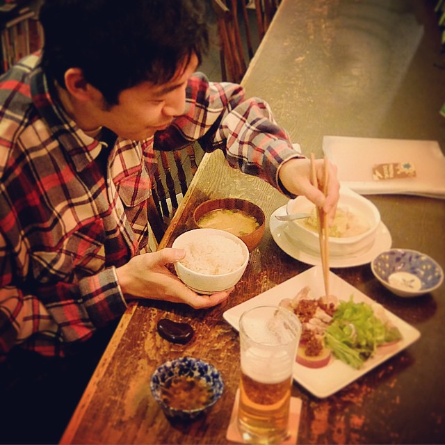 今日のまかないはねぎ塩鶏!もも肉を塩で焼いて、生のネギをたっぷり乗せたシンプルでさっぱりした一品です。柚子胡椒をちょっとつけると、アクセントになってまた美味しいのです。お肉が食べたいけどヘルシーなものもいいなあ…って時にぴったりじゃないでしょうか!奥の「ごぼうとピーマン、蒸し鶏のわさびあえ」も、最近のお気に入りです*(^o^)/*(コジ)