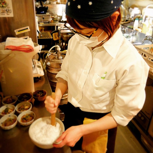 あー、土曜の夜は「ハマゲーナイト☆フィーバー」!…って、今夜のはまちゃんはマスク!いやいや花粉のせいで声が酷く枯れておりまして、えぇ、今夜はなるべく裏方仕事をお願いするつもりです。のんびりはじまったディナータイム、地味〜に炒り塩作業中(苦笑)。(お)