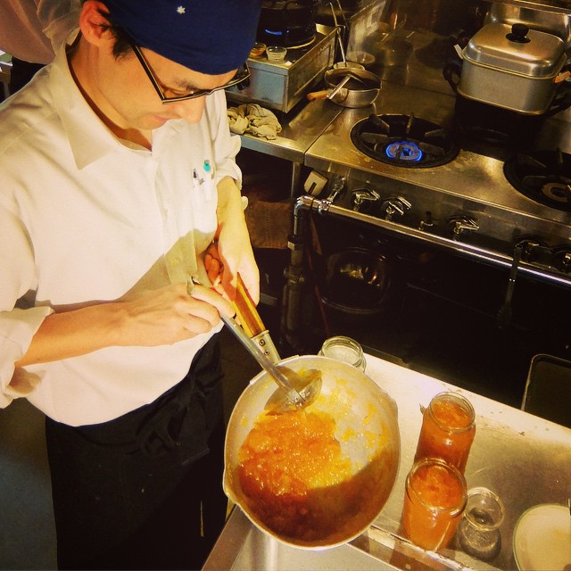 あー、今週はのんびりだったのもあってキッチンスタッフのくぼさんが初のマーマレイド作りに挑戦中!細切りにした皮を、一度下茹でしております…って続きはまた来週!お楽しみに!(笑)(お)