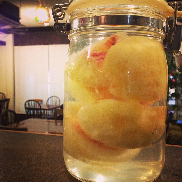 桃の季節も終わろうとしている今、嵐の前の暇な時間を使って、桃の泡盛仕込んでみました。美味しかったらお出しします!見た目は麗し〜(麻)