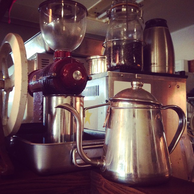 コーヒー部は、電動ミルは「みるっこ」、ドリップポットはタカヒロの、豆はもちろんまほろば珈琲のリトスタブレンド。(お)