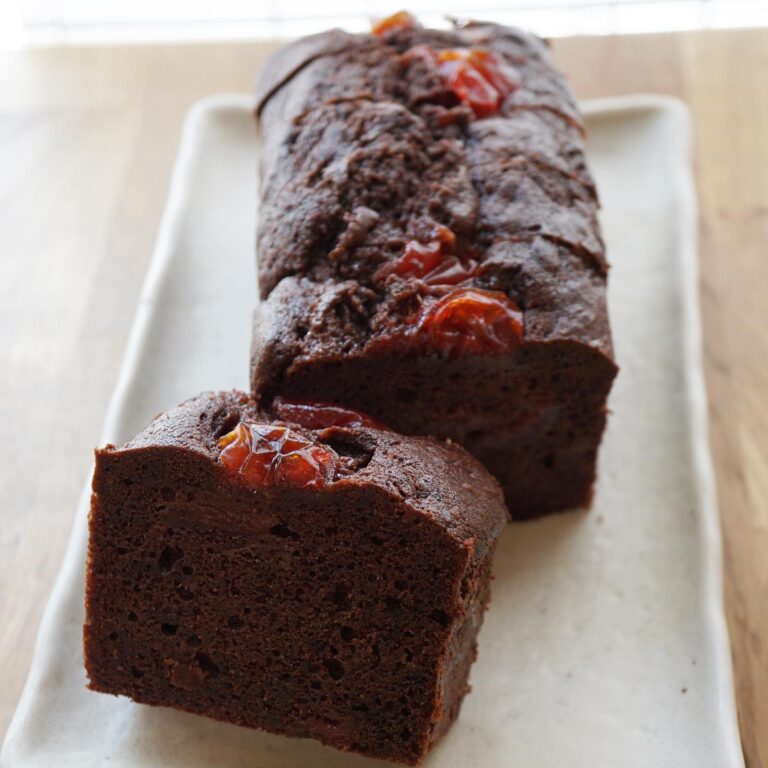 パウンドケーキが切り替わりましたよー! 今回は「すももとココア」です。レアチーズケーキのソースや、サワークリームと一緒に小さなケーキにも使っておりました自家製すももコンフィチュールをココア生地のパウンドケーキに焼き込みました。しっかり濃いめのココア生地と甘酸っぱいすもものハーモニーは、フォレ・ノワールのイメージです。見た目は大人だけど味わいは意外と優しいですよ。他のすももデザートは終了となりますので、よろしくお願いします!(麻)