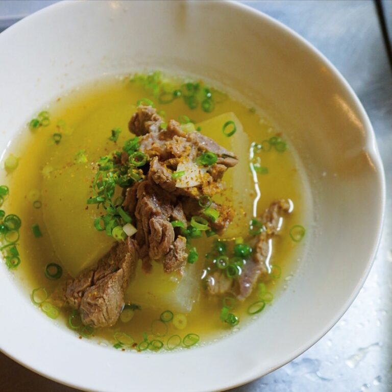 実は新メニューなんですよ!「牛肉と冬瓜のスープ煮」は、じっくり柔らかく煮込んだ牛肉のスープを冬瓜に染み込ませるようにに合わせた、ほんのり韓国風の煮物です。体の余分な熱を取り除くと言われる夏バテ対策の代表食材の冬瓜と、元気を回復する牛肉で、夏に負けない体を作ってくださいねー!(麻)