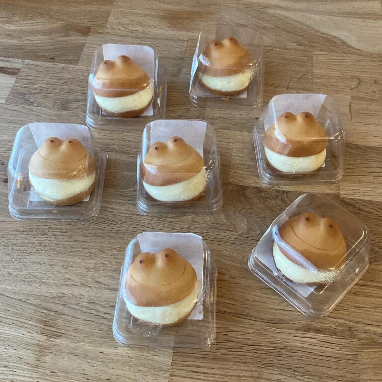 #リトスタおやつ通信 なべさんからの差し入れ「ケロトッツォ」!見てください、このなんともいえぬ表情…!クリームチーズ&レモンとあんこの和菓子ってちょっと珍しいですよね、素敵な組み合わせに心躍らせる午後です。名古屋の名物お菓子のようで、興味のある方は次回のリトスタ新聞のなべさんの記事に詳細が。読んでいただけたら幸いです(ぬ)