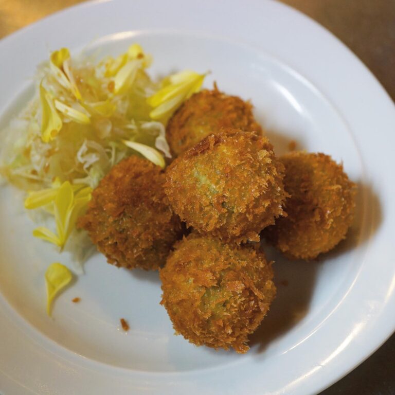 新年で連休明けで、暇ジンクスに震えておりますが、そんな予感をぶっ飛ばす勢いの洋食祭り! 一昨年のクリスマスディナーで好評でした「ブロッコリーのチーズコロッケ」は、旬のブロッコリーに信じられないくらいたくさんの粉チーズを合わせて、もっちり美味しいおつまみコロッケです。ワタシは白ワインに合わせるけど、もちろんビールでもハイボールでもお茶でも良いのよ!揚げたてをお召し上がりいただきたいけど、お持ち帰りも対応してます(麻)